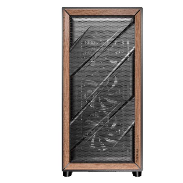 Il pannello frontale è realizzato con una combinazione di rete metallica e legno (noce) per creare una texture di alta qualità con materiali diversi, integrandosi perfettamente nel design della casa.