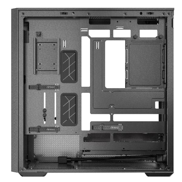 Design delle prese d’aria multidirezionali, con ampie prese d’aria nella parte inferiore, nella camera di alimentazione e nei lati inferiori, insieme a prese d’aria superiori e una rete di ampia superficie nella parte anteriore, che creano un canale di flusso d’aria Antec Flux dedicato.
