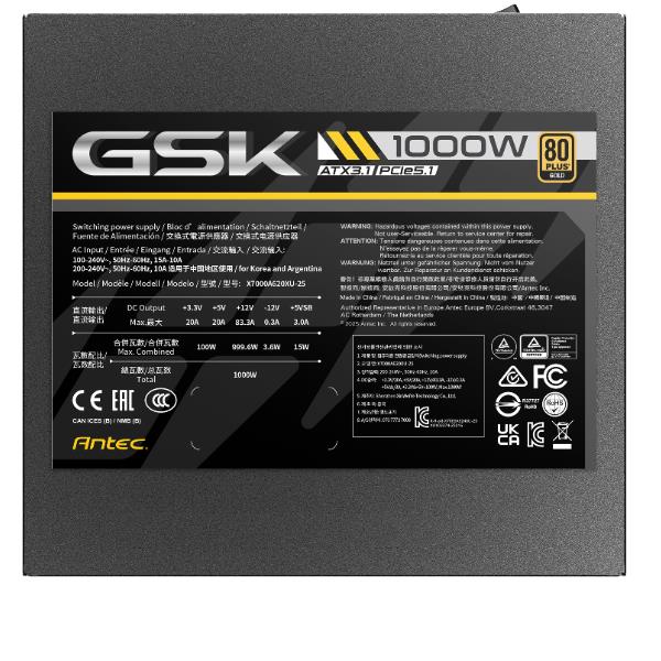 L’alimentatore Antec GSK 1000 garantisce stabilità e silenziosità per il tuo PC ad alte prestazioni. Con certificazione 80 Plus Gold e cavi modulari, ottimizza l’efficienza energetica e semplifica il cablaggio, offrendo potenza affidabile per gaming e workstation.