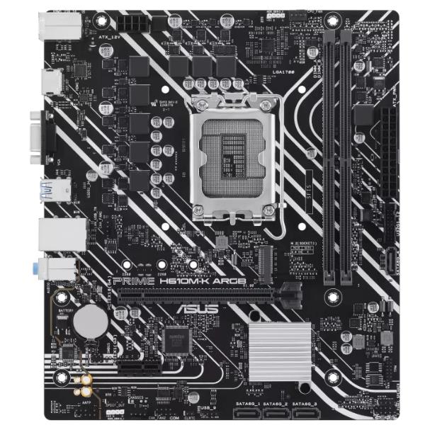 Scheda madre micro-ATX Intel ® H610 (LGA 1700), DDR5, PCIe 4.0, slot M.2, Realtek 1 Gb Ethernet, HDMI™, VGA, USB 3.2 Gen 1, SATA 6 Gbps, connettori indirizzabili Gen 2, Aura Sync.