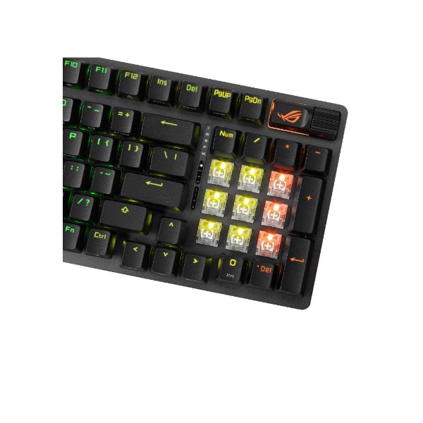 La tastiera da gioco ROG Strix Scope II 96 Wireless unisce le prestazioni più avanzate a un design intelligente che risparmia spazio. Il layout al 96% include tutti i tasti funzionali, liberando la tua scrivania senza compromessi.