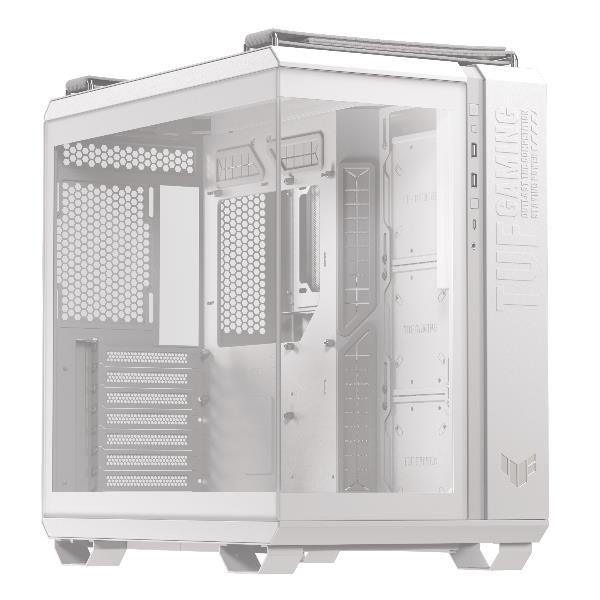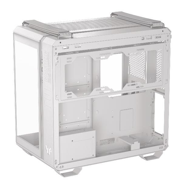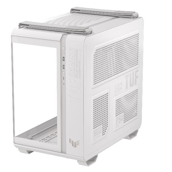 TUF Gaming GT502 Horizon migliora il suo PC DIY con pannelli laterali che possono essere rimossi semplicemente premendo un pulsante nascosto sul retro dello chassis.