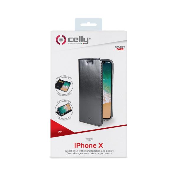 Funzione stand integrata e tasca interna per carte e banconote.