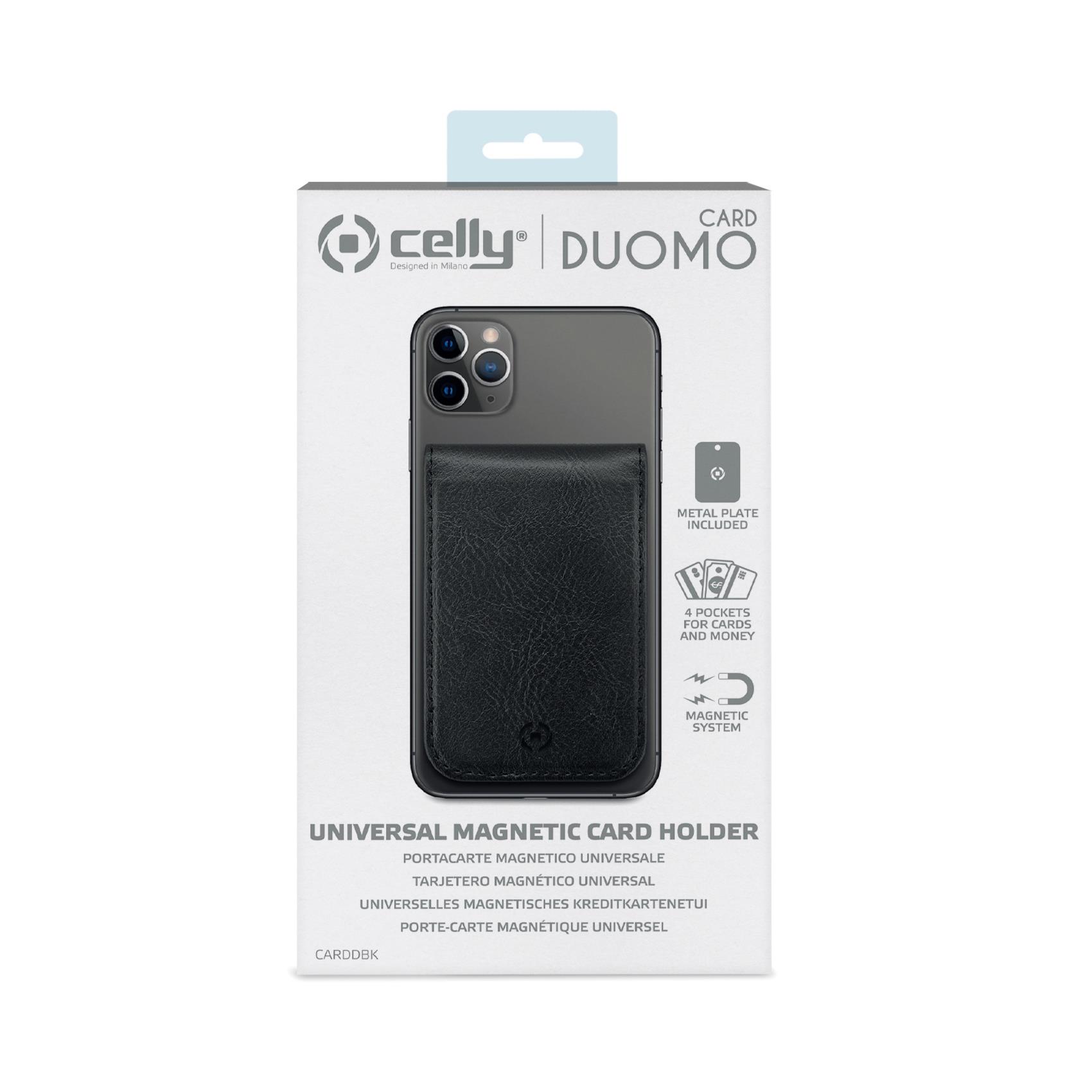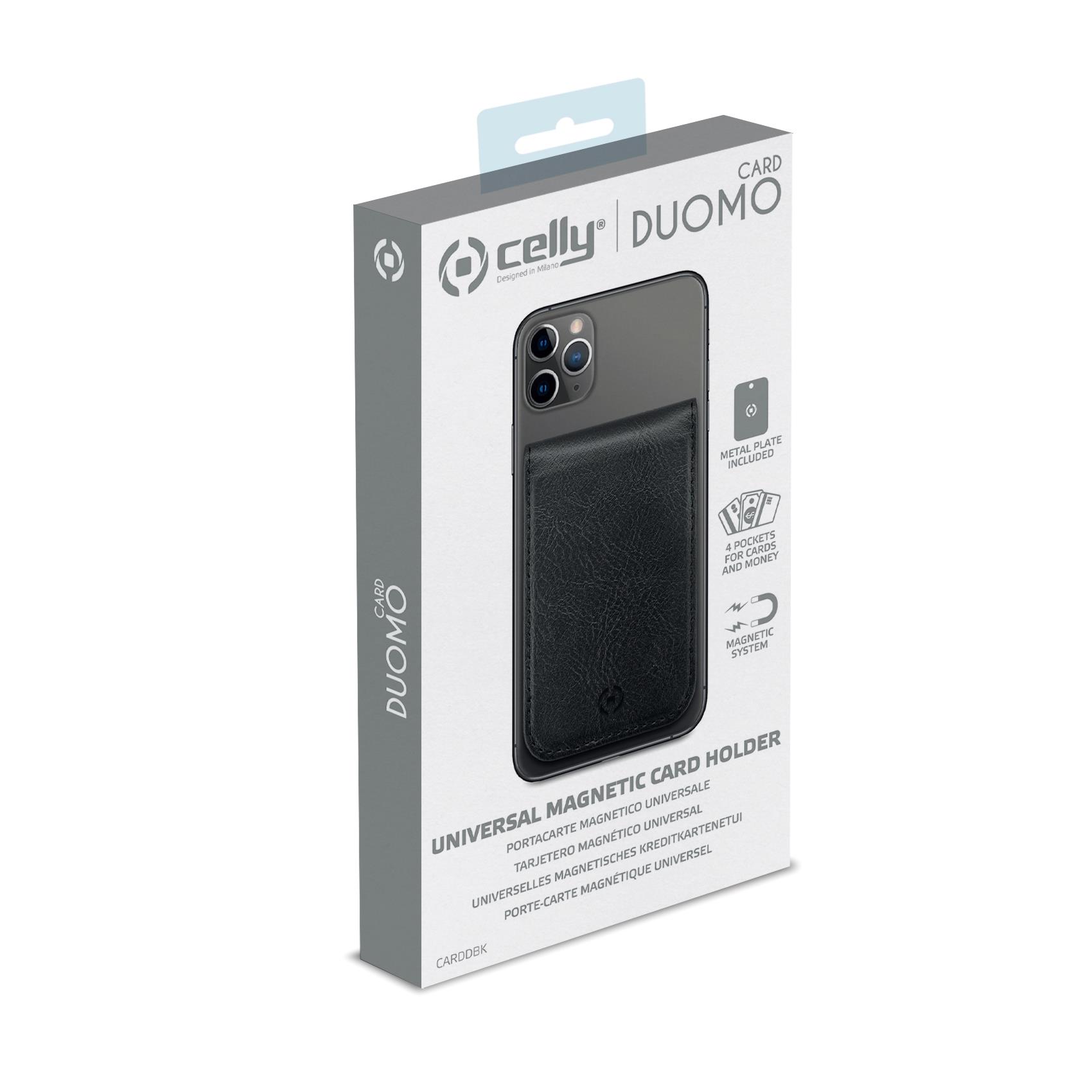 DUOMO CARD ha un magnete integrato, utilizza la placca metallica inclusa in confezione sopra o sotto la cover del tuo smartphone e attacca Duomo Card al tuo device.