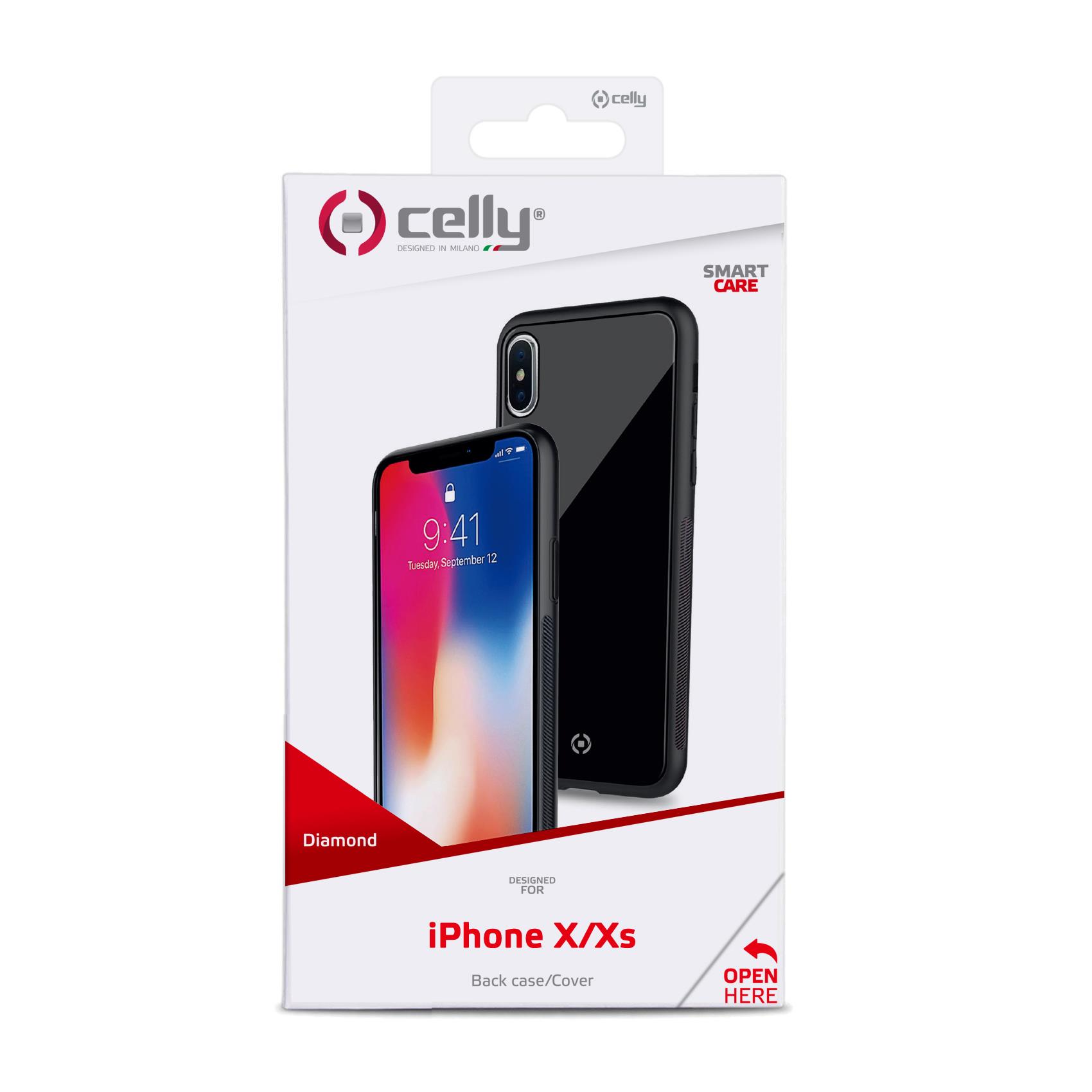 Cover Celly DIAMOND per iPhone Xs e iPhone X in TPU e vetro temperato nero