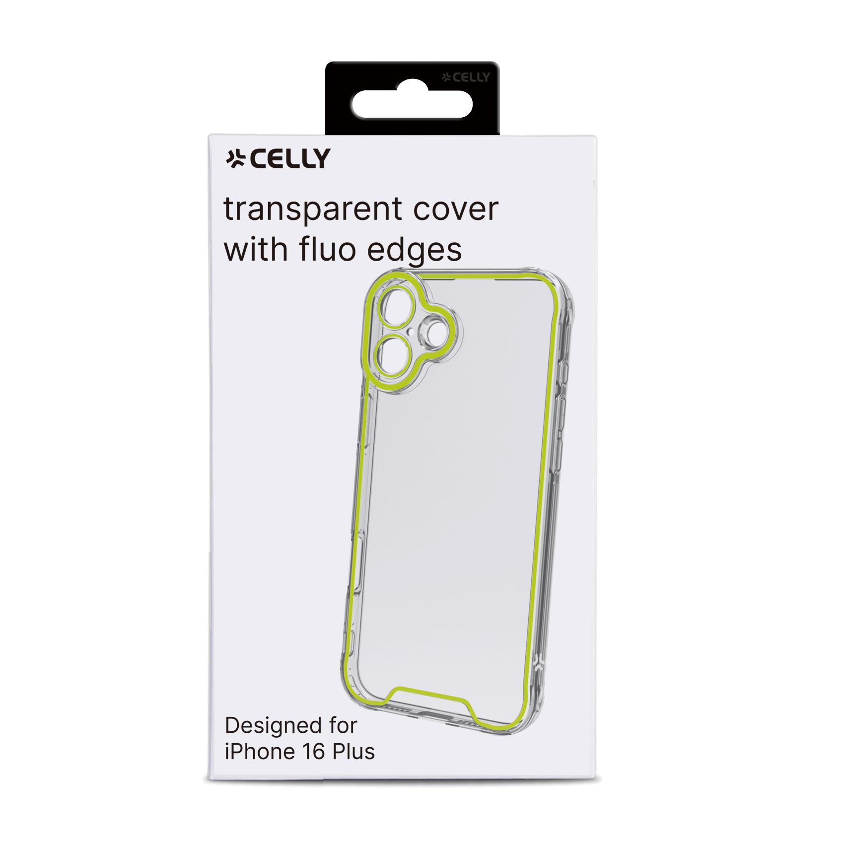 Cover Celly GLOW per iPhone 16 Plus Trasparente Gialla