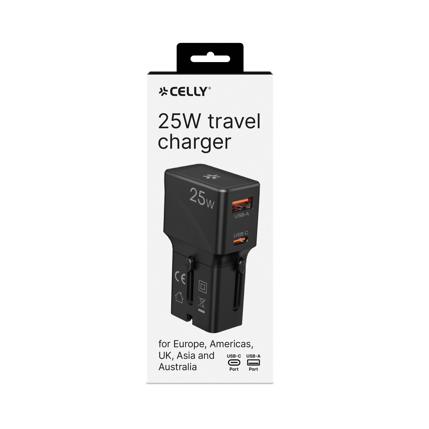 Viaggia senza pensieri con l’adattatore da viaggio universale 25W, compatibile con le principali prese internazionali: EU, UK, USA, AUS (Tipo C, G, A, I).