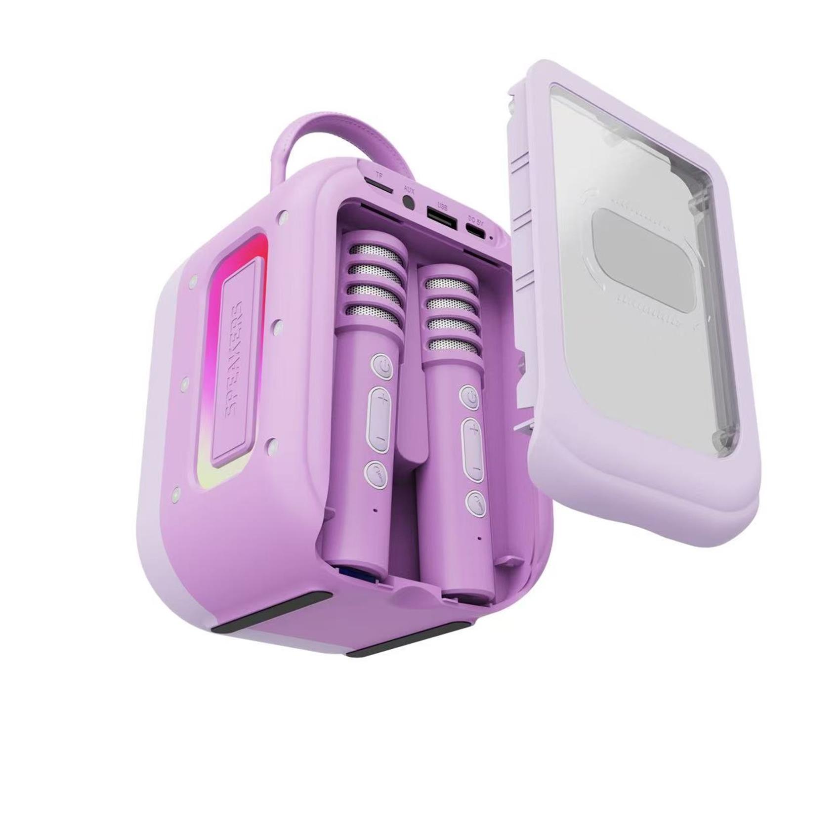 Con 5 effetti vocali divertenti, i bambini possono sperimentare e trasformare la loro voce, dando libero sfogo alla fantasia. Il design è pratico e a misura di bambino: il manico in silicone lo rende facile da trasportare, e i due microfoni si ripongono ordinatamente sul retro, sempre al sicuro e pronti per la prossima esibizione.