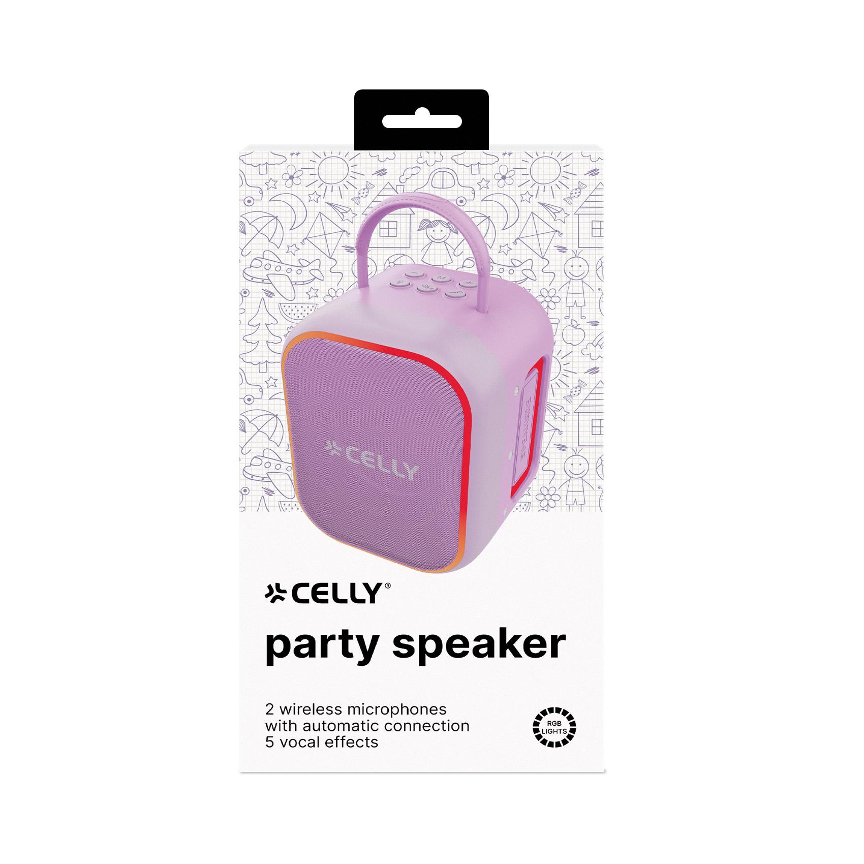Lo speaker Celly da 10W con microfoni wireless è il compagno di giochi perfetto per i più piccoli. Trasforma la loro stanza in un palcoscenico dove musica, luci e canto si uniscono per ore di divertimento sicuro e creativo.