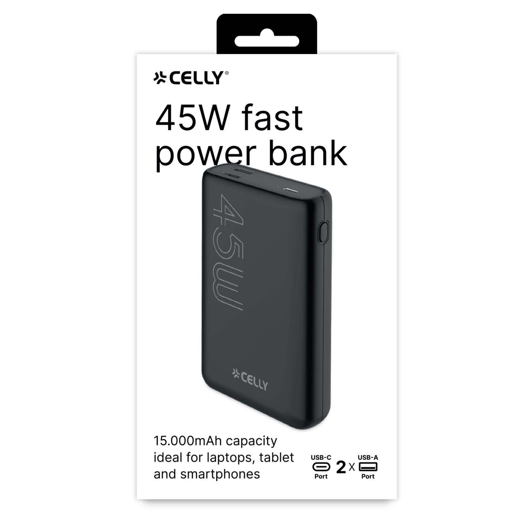 PD45W è il Power Bank con capacità di 15000 mAh che consente di ricaricare il tuo dispositivo fino a 7* volte.