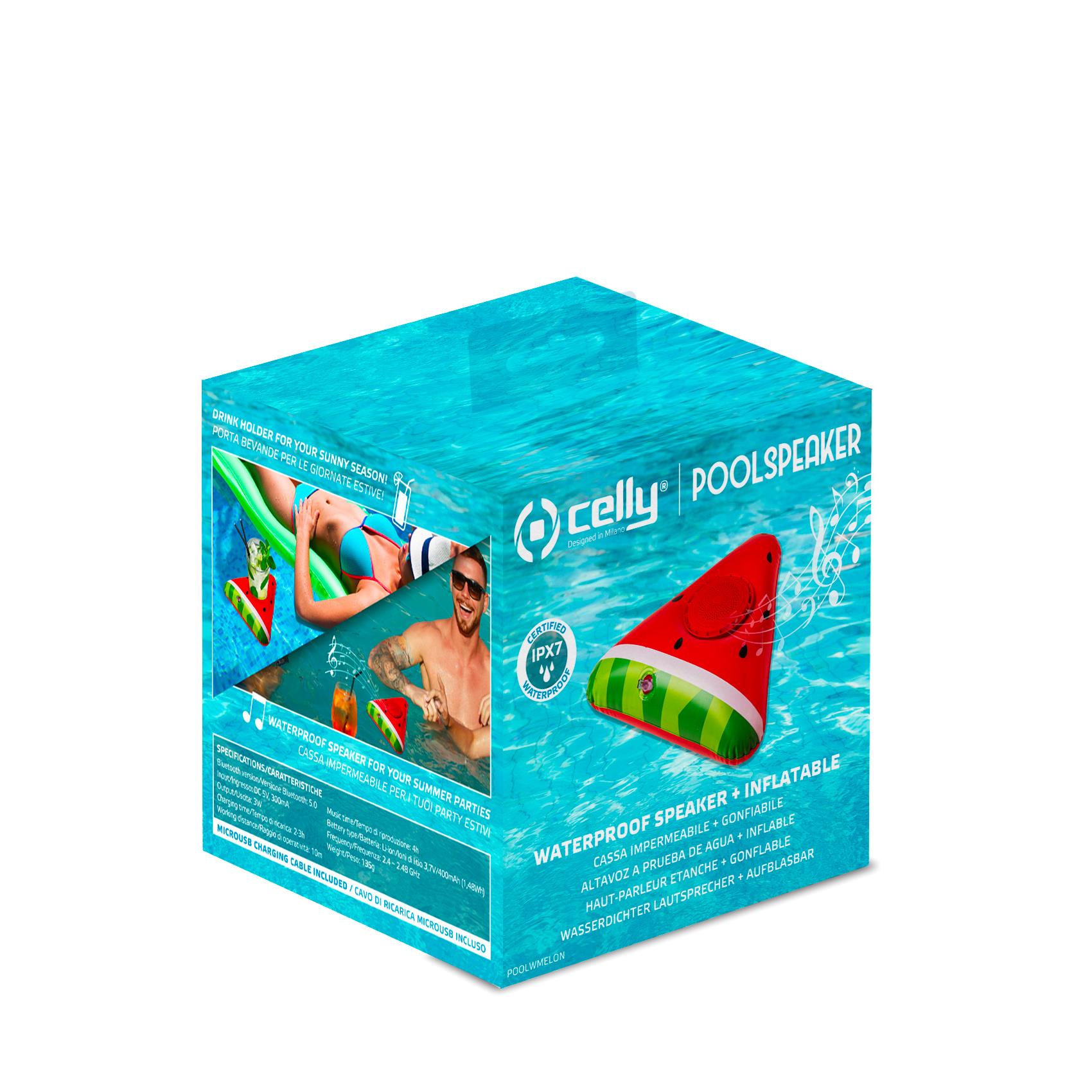Scegli il tuo gonfiabile preferito tra Fenicottero, Ananas, Palma e Anguria, inserisci lo speaker impermeabile senza fili e accendi di musica i tuoi party in piscina!