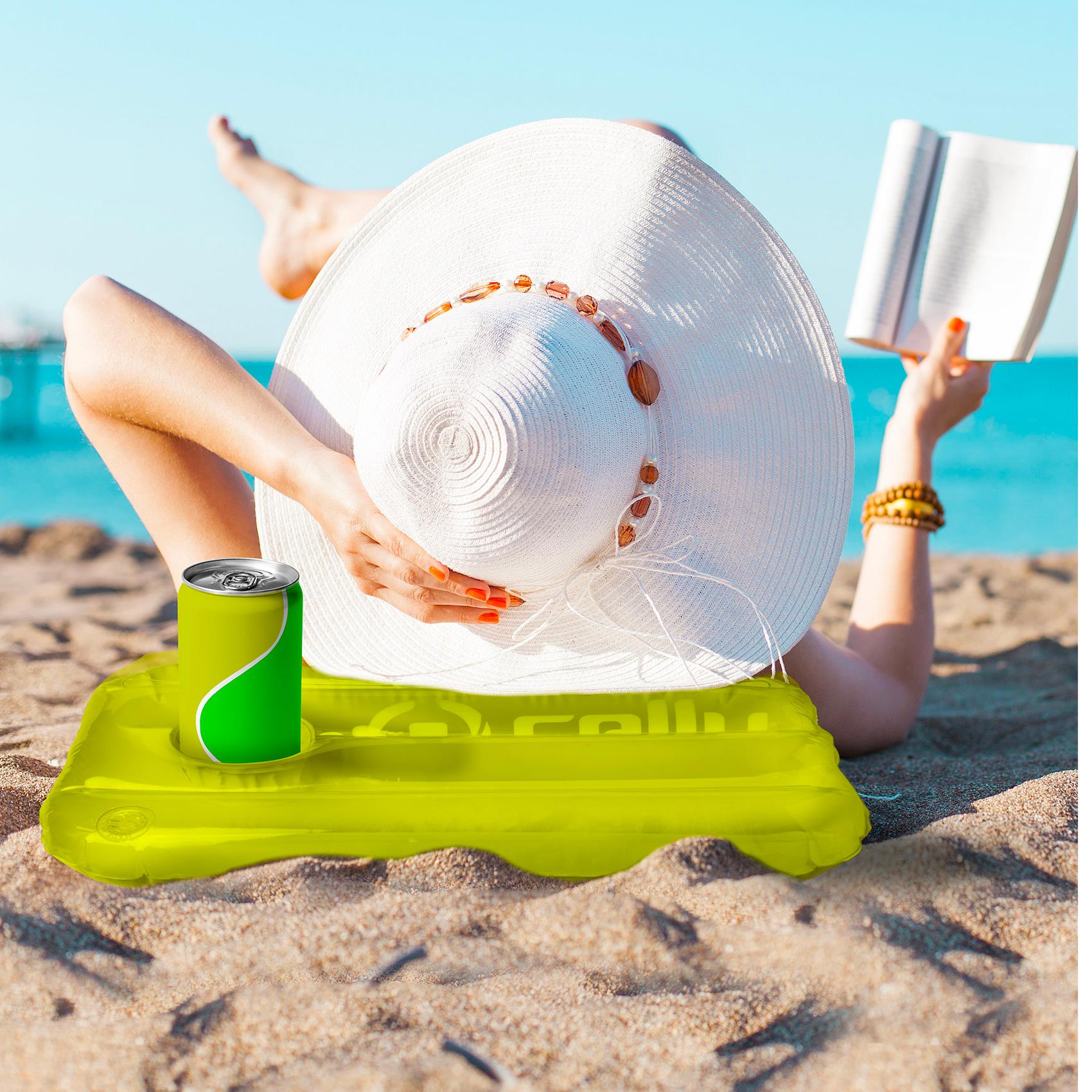 Nelle calde giornate estive POOLPILLOW si trasforma anche in un comodo porta bevande per rilassarti sorseggiando un cocktail in spiaggia.