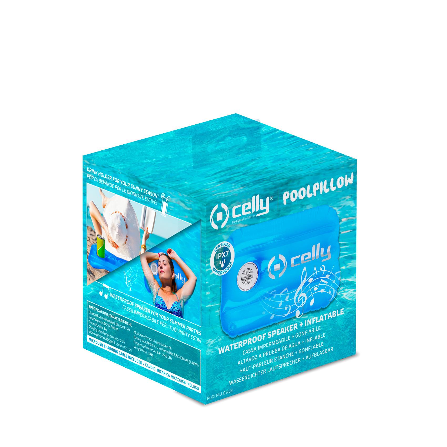 Lo speaker Bluetooth Celly POOLPILLOW è il compagno ideale per le tue giornate all’aperto. Grazie alla sua resistenza all’acqua, puoi portare la tua musica in piscina, al mare o in giardino senza preoccupazioni. Offre fino a 4 ore di riproduzione continua con un suono chiaro e potente, perfetto per creare l’atmosfera giusta in ogni occasione estiva.
