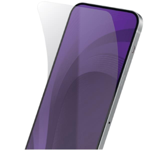 Il trattamento speciale a raggi UV (tecnologia Proshield) polimerizza la pellicola, donandole una rigidità e una sensazione tattile che simulano la robustezza di un vetro temperato, offrendo una protezione superiore contro graffi e urti.
