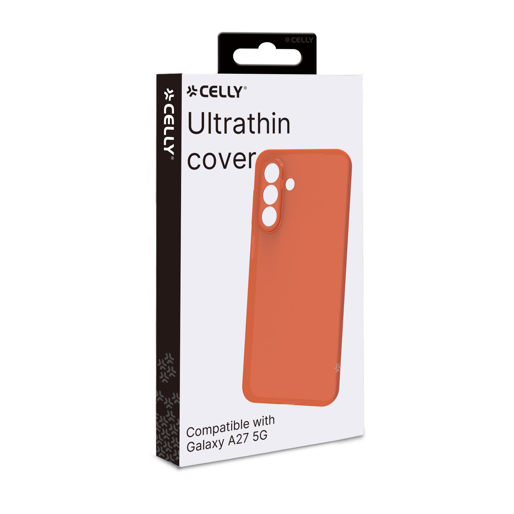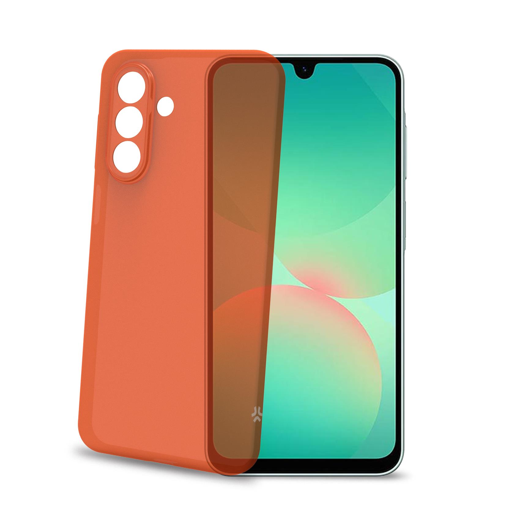 Celly SANDCASE- Cover morbida in TPU con tasti e bordo fotocamera colore a contrasto, effetto sabbiato colore trasparente arancione compatibile con Samsung Galaxy A27 5G – Cover