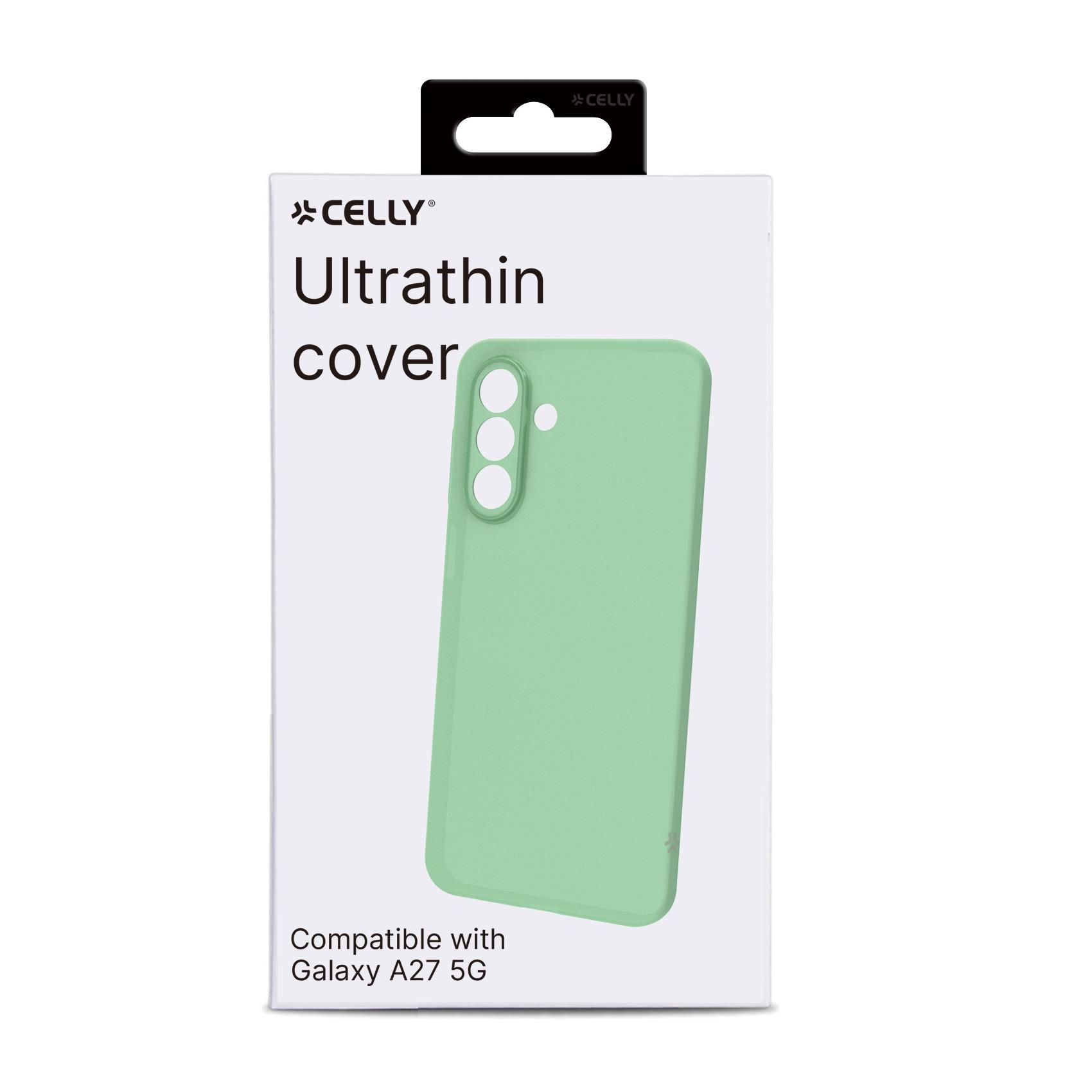 Celly SANDCASE- Cover morbida in TPU con tasti e bordo fotocamera colore a contrasto, effetto sabbiato colore trasparente verde compatibile con Samsung Galaxy A27 5G – Cover