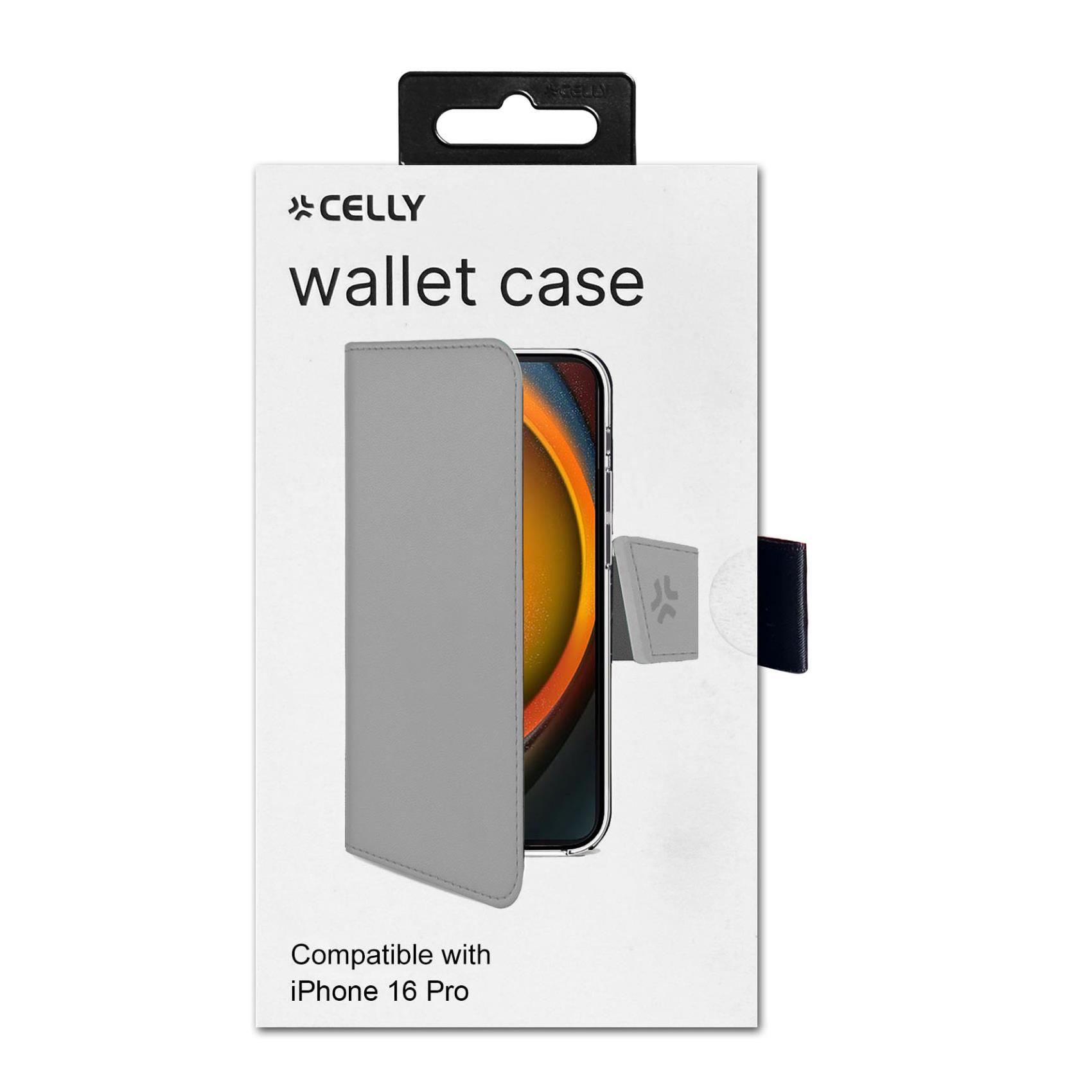 Custodia Smartphone Celly WALLY per iPhone 16 Pro Grigio Similpelle