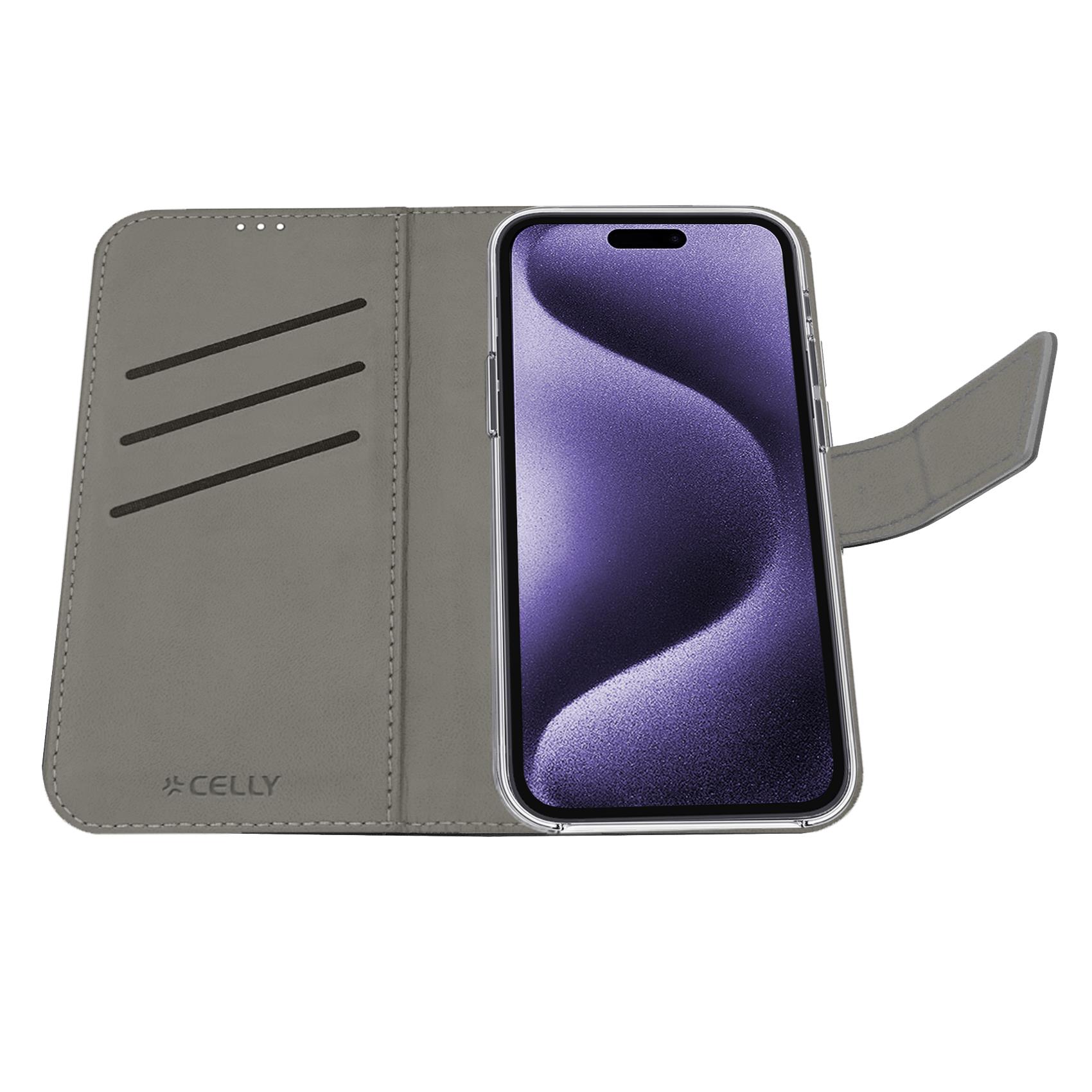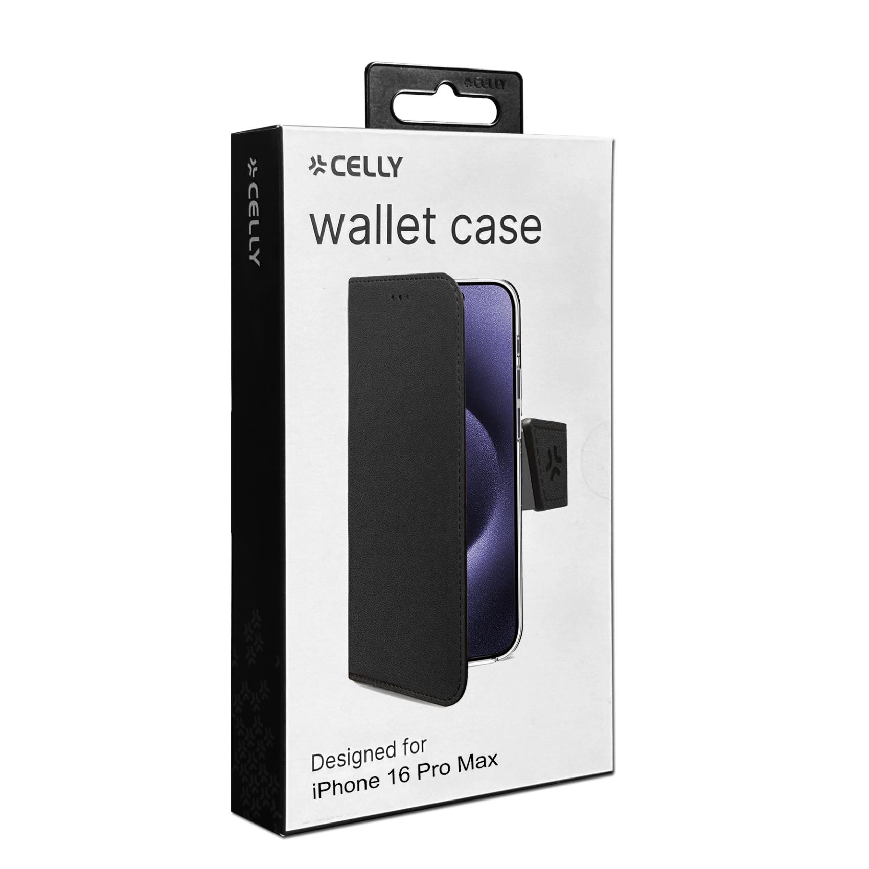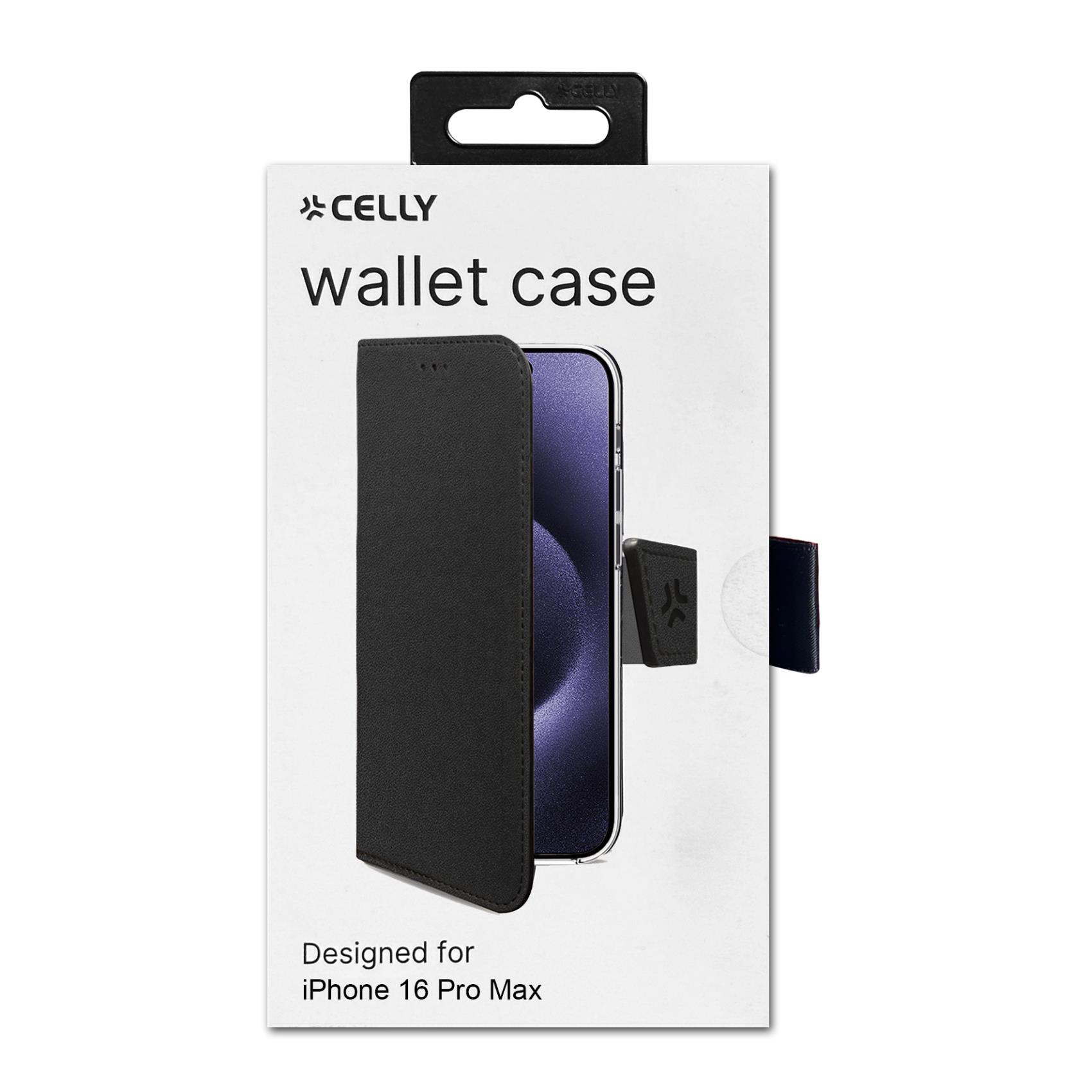 Custodia Celly Wally per iPhone 16 Pro Max in Similpelle Nero