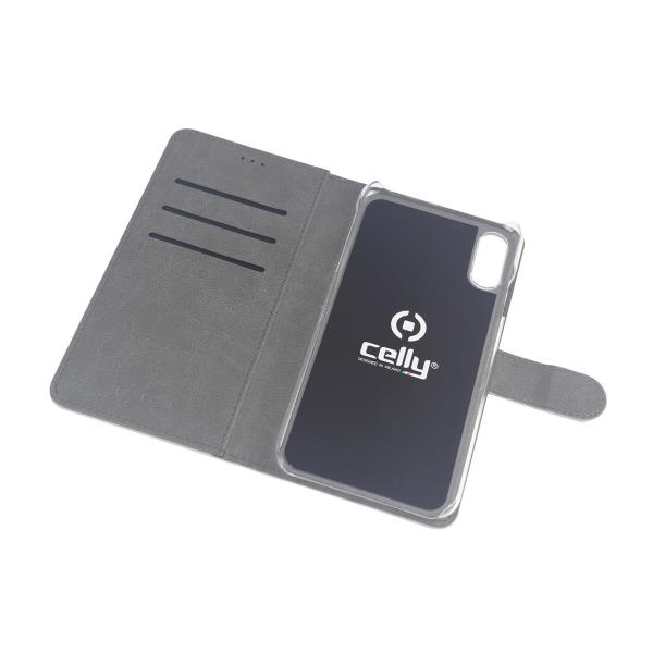 Protegge il device con la morbidezza dei materiali, le raffinate cuciture e gli ingombri contenuti per uno stile sobrio ed elegante sottolineato dal logo Celly.