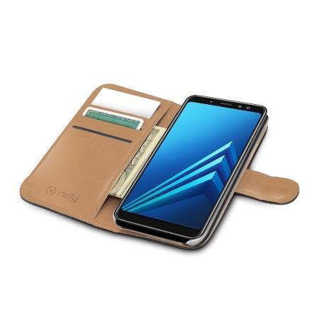 Custodia Smartphone Celly Wally per Samsung Galaxy A8+ 2018 Similpelle Nero