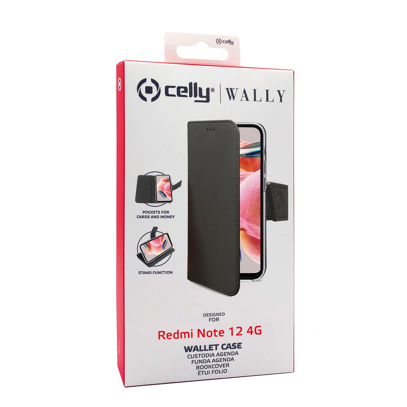 Custodia Celly Wally per Xiaomi Redmi Note 12 4G in Similpelle Nero