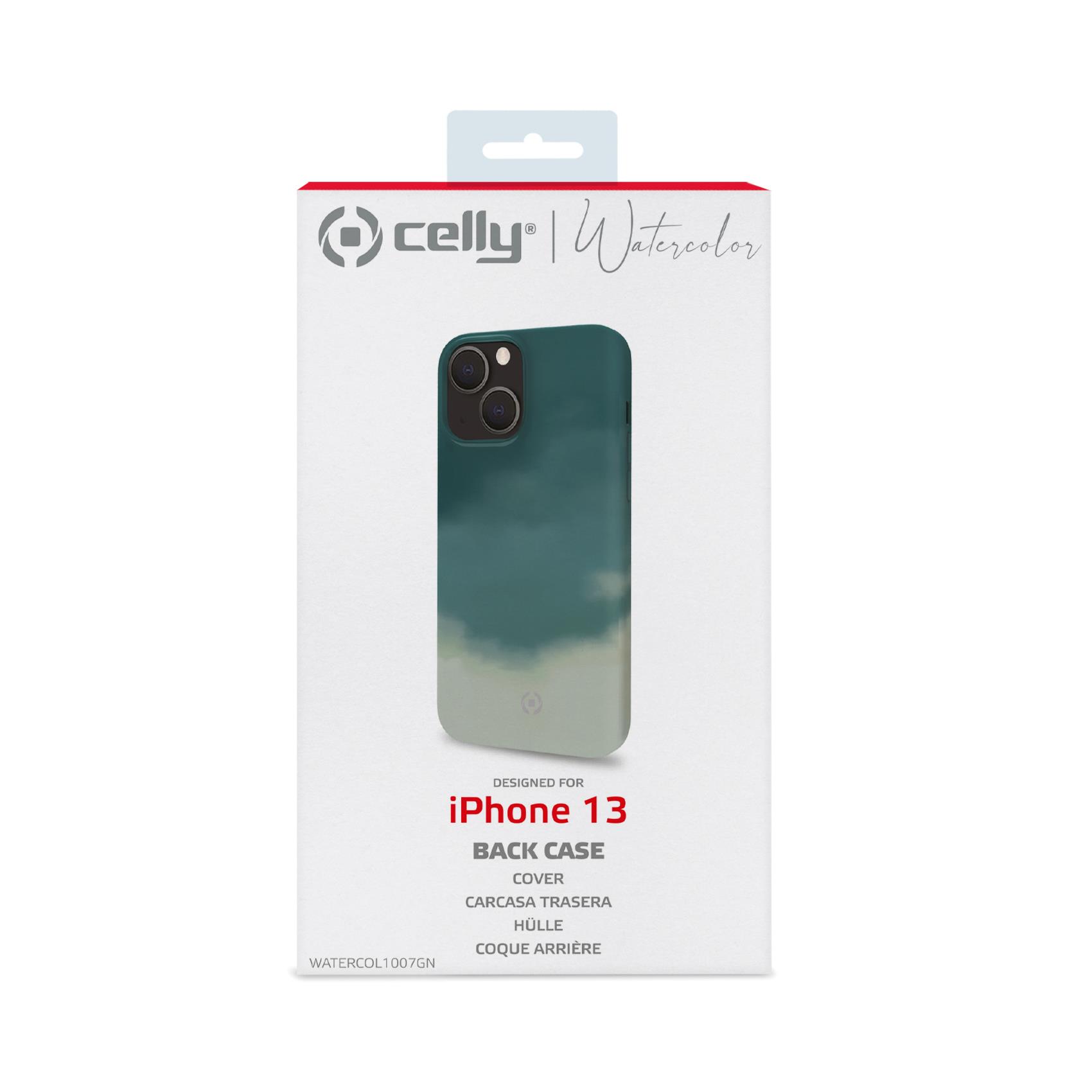 Cover Celly WATERCOLOR per iPhone 13 in TPU Verde