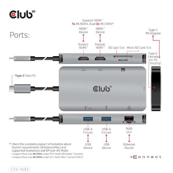 Recensisci “Hub USB-C Club3D 8-in-1 2xHDMI, 2xUSB-A, RJ45, SD/MicroSD e PD” per primo
