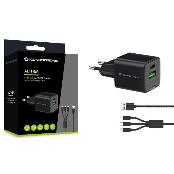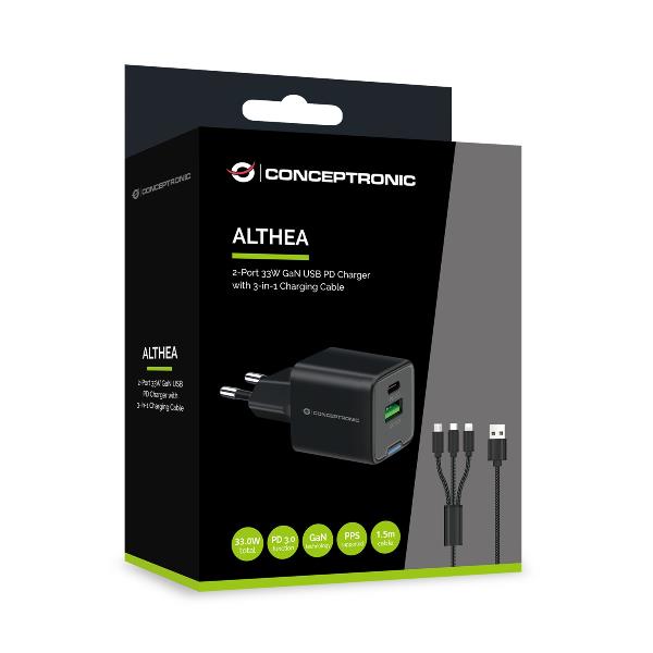 Il caricabatterie USB ALTHEA16B offre una ricarica efficiente e veloce, grazie a una porta USB Type-C con tecnologia Power Delivery (PD) e PPS che rileva e ricarica automaticamente dispositivi come Samsung Galaxy Note, Nintendo Switch, iPad, iPhone, ecc. a una velocità massima di 33W. Il caricabatterie è protetto da sovraccarico, cortocircuito e surriscaldamento. Grazie al suo design compatto e leggero, è un dispositivo da viaggio e un compagno quotidiano ideale.