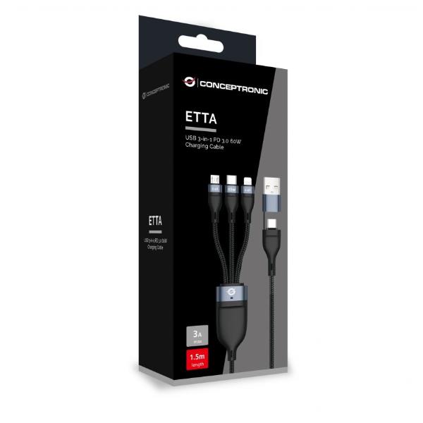 Hai mai contato quanti cavi diversi porti in giro? Il cavo per il telefono, quello per il power bank, un altro per l’auricolare… È ora di semplificare. Il cavo USB-C 3-in-1 di Conceptronic riunisce in un unico cavo robusto i tre connettori che servono davvero: USB-C, microUSB e Lightning.