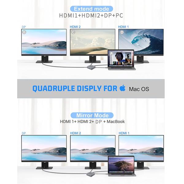 – Consente ai laptop Windows/macOS di estendere fino a tre display con risoluzione 4K