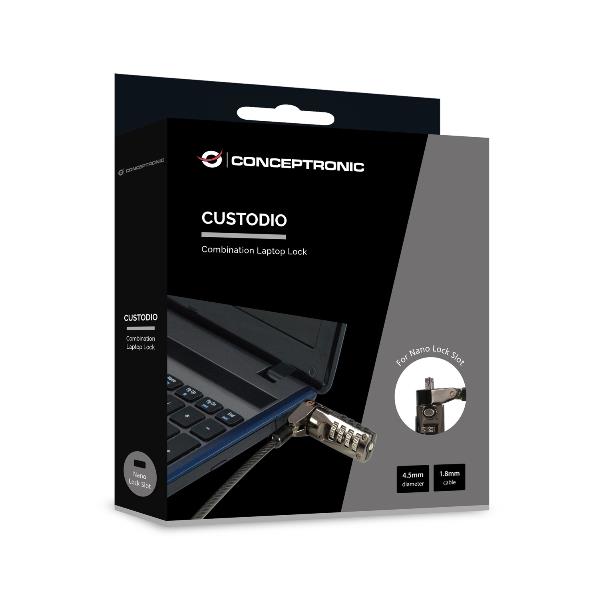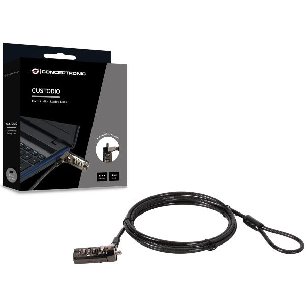Cavo di Sicurezza Notebook Conceptronic Lucchetto a Combinazione 1.8m Nero