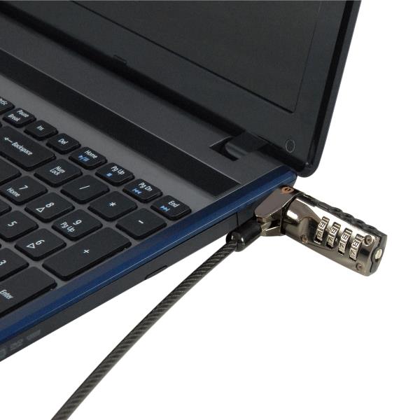 Il lucchetto a combinazione per notebook protegge i notebook dai furti*. Il lucchetto si adatta a tutti i notebook dotati di connessione di sicurezza. È sufficiente fissare il cavo di 1,8 metri a un oggetto fisso (ad esempio in biblioteca, aeroporto o ufficio) e collegarlo al notebook. Grazie al lucchetto a combinazione non dovrete temere di perdere le chiavi.