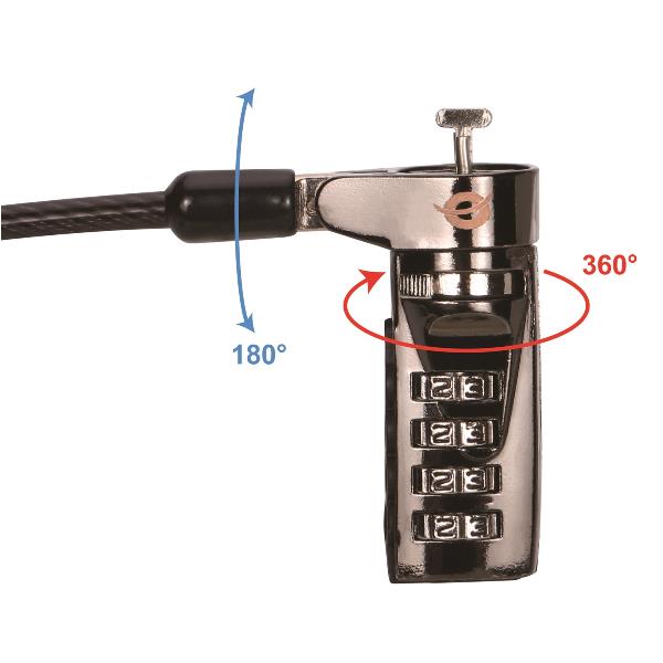 – Testa della serratura ruotabile a 360 gradi e cavo girevole per un facile collegamento al portatile