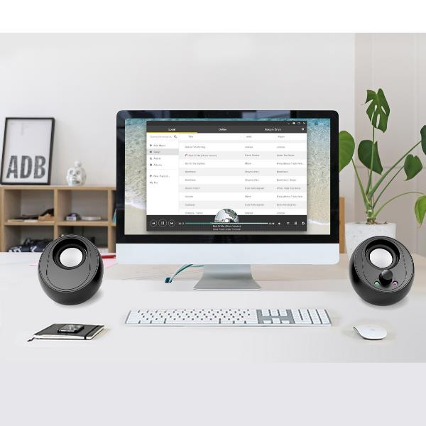 Cerchi un suono pieno e nitido per il tuo spazio di lavoro o per la tua postazione gaming, senza occupare tutta la scrivania? Questo sistema stereo 2.0 è la risposta.