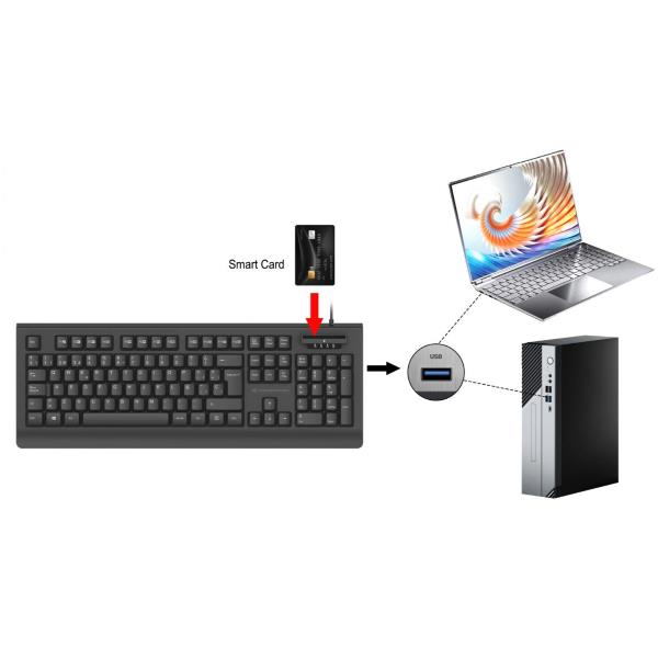 La tastiera USB con lettore di Smart ID Card è il tuo compagno ideale per la dichiarazione dei redditi online, l’online banking e l’identificazione online. La tastiera è completamente compatibile con Windows XP, Vista, 7, 10 e 11, così come con applicazioni essenziali come DNIe e eID.