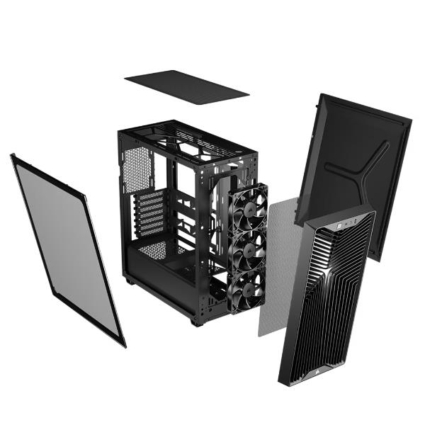 La copertura dell’alimentatore (PSU shroud) include inoltre 2 supporti per ventole da 120 mm, di cui quello anteriore è inclinato direttamente verso la GPU, offrendo una capacità di raffreddamento ancora maggiore per le GPU più esigenti.