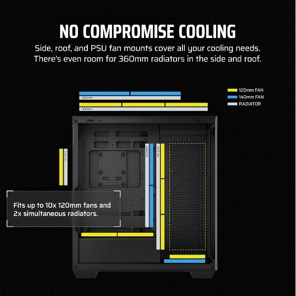 • Punti di montaggio per ventole laterali, superiori ed in prossimità dell’alimentatore per straordinarie prestazioni di raffreddamento