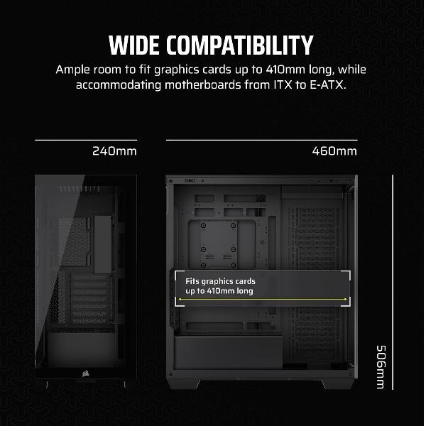 Il case mid-tower CORSAIR 3500X in vetro offre le caratteristiche più amate dagli appassionati di assemblaggio, combinandole a splendidi pannelli panoramici in vetro ed alla potenza di raffreddamento di cui hai bisogno per dare vita a uno straordinario sistema.
