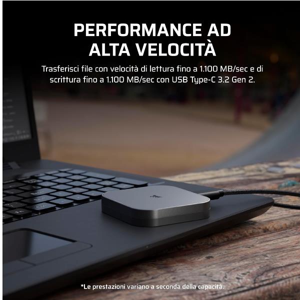 - Velocità di lettura sequenziale fino a 1.100 MB/sec e velocità di scrittura sequenziale fino a 1.100 MB/sec