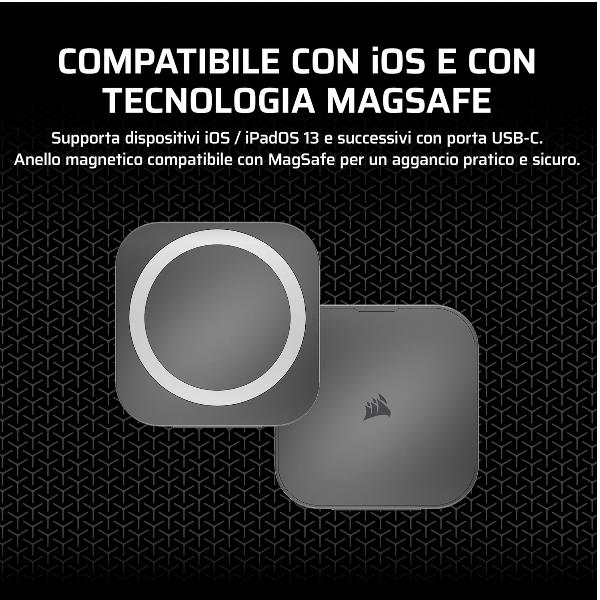 - Fattore di forma ridotto portatile e compatibile con iOS e MagSafe.
