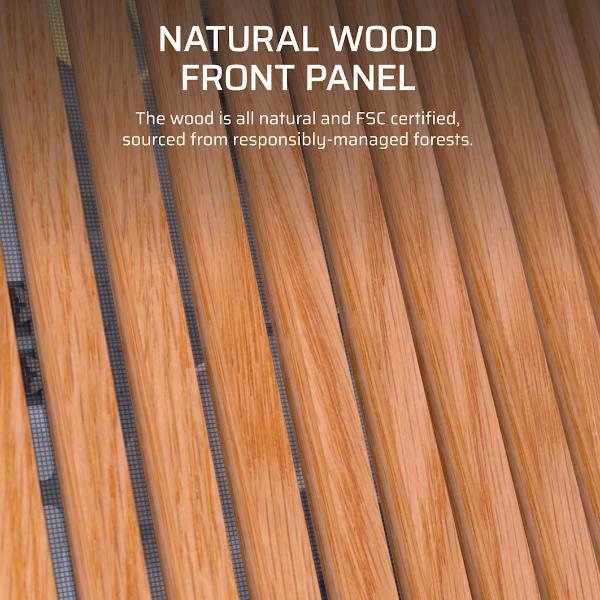 • Pannello anteriore in legno autentico e certificato, per un look naturale