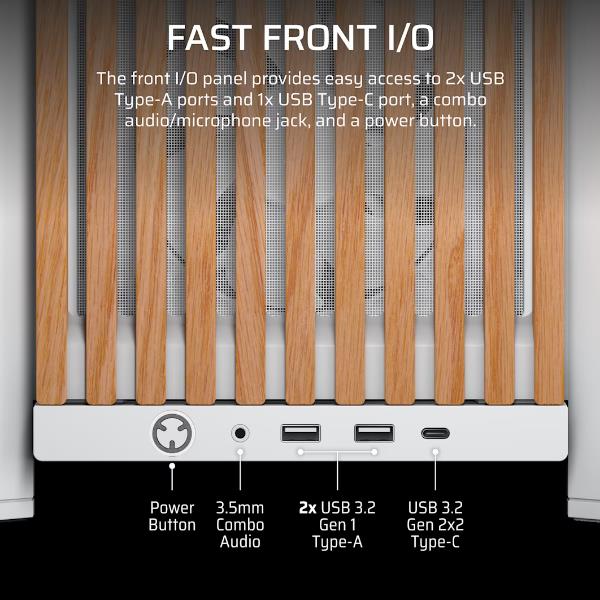 FRAME 4000D WOOD RS ti permette di creare un PC che si fa notare ma si integra alla perfezione, grazie al pannello anteriore in legno naturale certificato che unisce stile e prestazioni di raffreddamento.