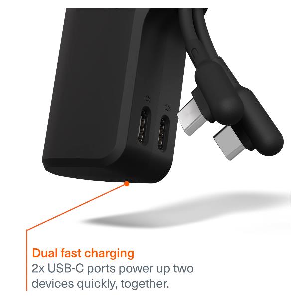 La sua vera forza? La ricarica rapida da 20W ti permette di riprendere la giornata in pochissimo tempo. Con due porte USB-C PD, puoi alimentare due dispositivi contemporaneamente, dal tuo smartphone al tablet.