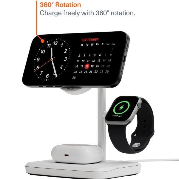 Scopri la ricarica wireless senza interruzioni. Velocemente e contemporaneamente ricarica iPhone, AirPods e Apple Watch. Con la tecnologia Qi2.0, hai l’ultima novità in fatto di ricarica wireless.