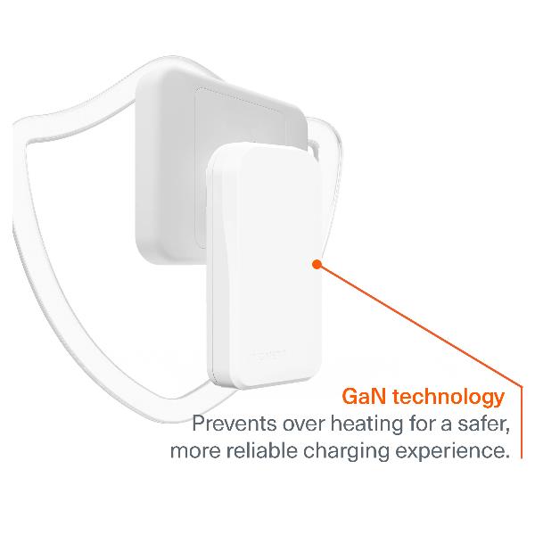 Tecnologia GaN: La tecnologia GaN avanzata mantiene il caricabatterie da parete fresco per un’esperienza di ricarica più sicura e affidabile.