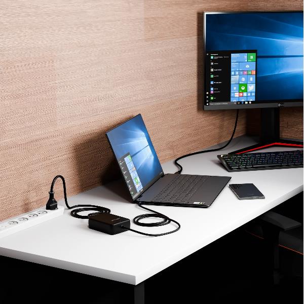 Tecnologia GaN: L’avanzata tecnologia GaN mantiene freddo il caricatore del tuo laptop per un’esperienza di ricarica più sicura e affidabile.