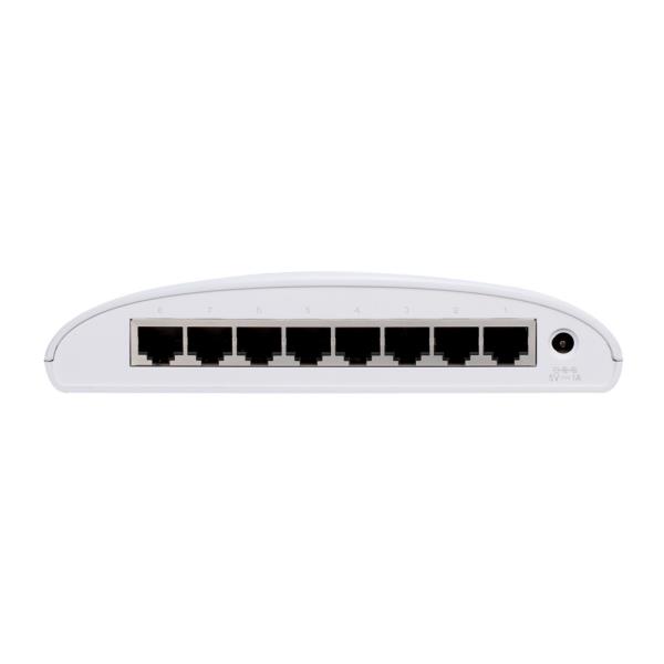 Lo switch fornisce 8 porte, tutte con supporto allo standard NWay. Le porte sono in grado di negoziare sia la velocità di connessione in ambienti di rete 10BASE-T, 100BASE-TX e 1000Base-T sia la modalità di trasmissione full-duplex o half-duplex. Auto adattamento dei cavi MDI/MDIX