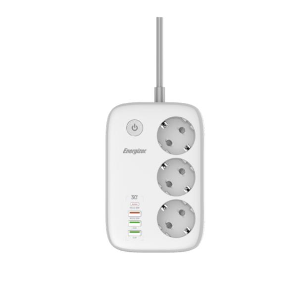 Multipresa Energizer 3 Prese Schuko + 3 USB + 1 USB-C Bianca 2 Metri