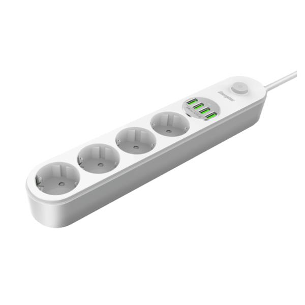 La multipresa Energizer offre 4 prese Schuko e 4 porte USB integrate per ricaricare tutti i tuoi dispositivi contemporaneamente. Dotata di interruttore e cavo da 2 metri, è la soluzione pratica e sicura per organizzare la tua postazione di lavoro o l’angolo casa, eliminando il disordine di caricatori e adattatori.