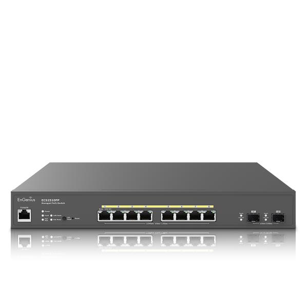 Lo switch EnGenius ECS2510FP a 8 porte multi-gigabit (2,5G) layer 2+ PoE+ (802.3at/af) con budget da 240 W e 2 porte uplink SFP+ (10G) che offre molteplici opzioni di gestione e può essere facilmente configurato, monitorato, e gestito. L’ECS2510FP è ideale per alimentare telecamere IP, telefoni VoIP e punti di accesso nelle grandi aziende.